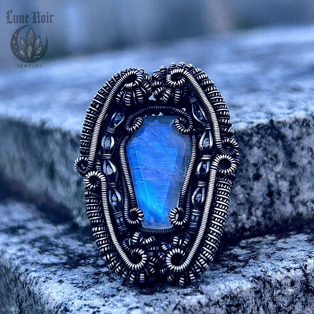 Umbriel holds a wayward angel’s last breath; bound in celestial metal, guarding their flickering soul, eternal and veiled in the shadows.